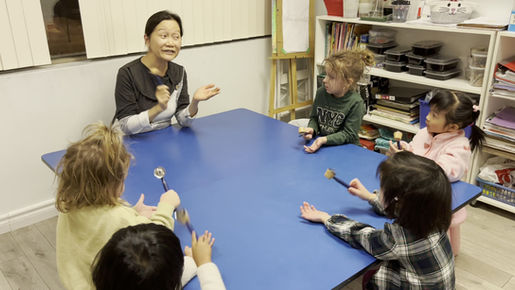 Base on RCM early childhood music curriculum & Kodaly method. There are challenging singing games, music & movement, plus various percussion instruments playing. Children will expose to essential components of music such as beat, rhythm, tempo and dynamics. Age-appropriate music performance is a must in each class to nurture music appreciation.